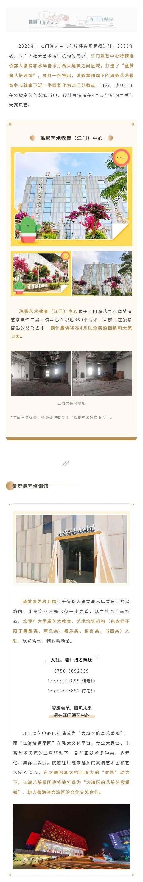 项目动态 | 珠影艺术教育(江门)中心预计最快4月份重磅亮相